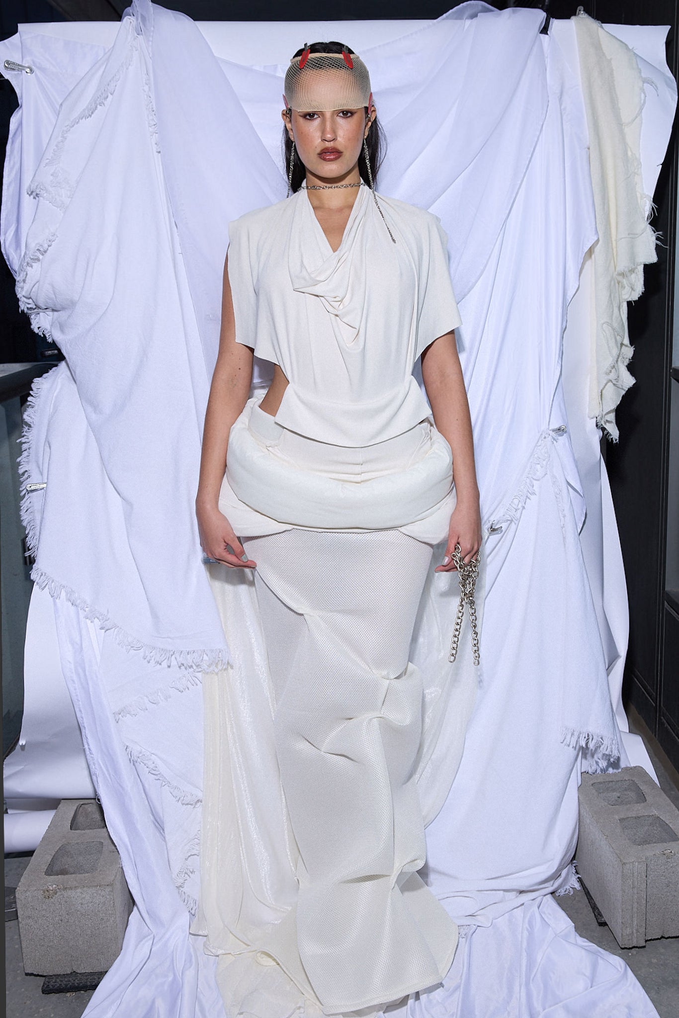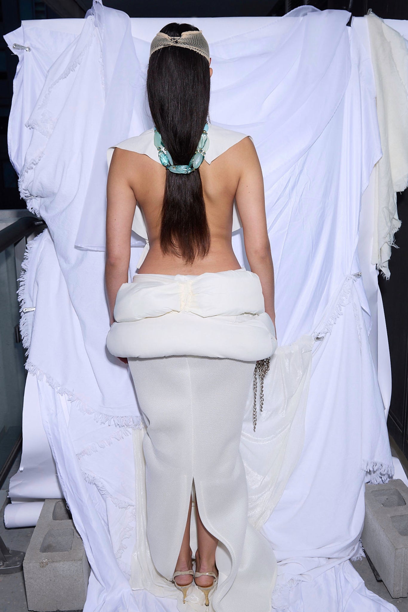 Phase III: Mermaid Maxi — A low-rise, slouchy mermaid skirt cut from lined netted mesh with a back slit for movement. Tailored to highlight and evolve with the body’s natural shape.
